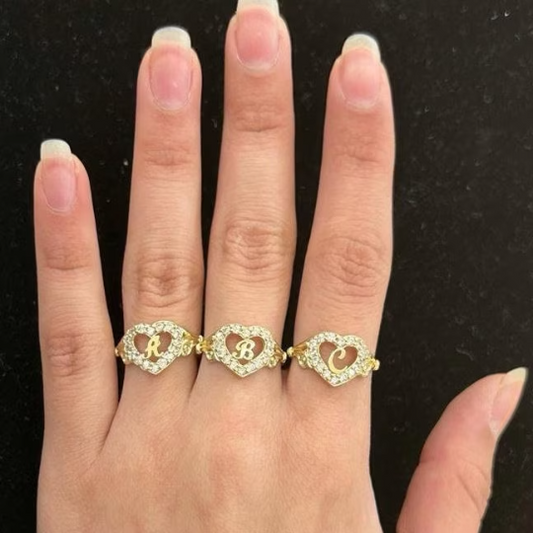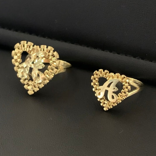 10k Real Gold Heart "A" Initial Ring, 10k Gold Initial Alphabet Ring, Name Initial Ring, Letter Ring, Heart Love Initial Ring, Promise Ring