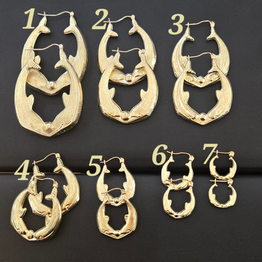 10k Yellow Gold Dolphin Hoops, Double Dolphin Design Hoop, Dolphin kissing, Women 10k Earrings, Baby Hoop, Baby Dolphin Earrings