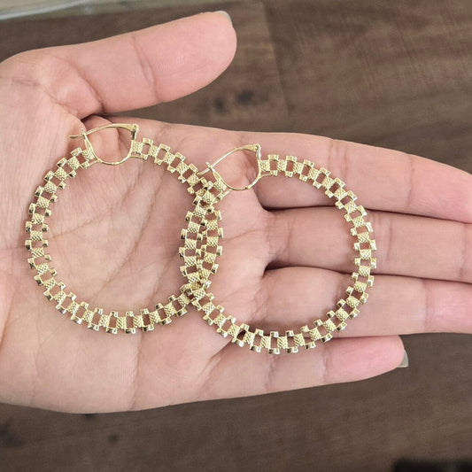 10k Gold Presidential Link Flat Hoops, Rolly Hoops, Women Earrings, Medium Size Hoops