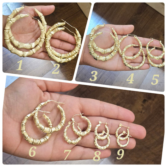 10k Gold Bamboo Style Hoops, Big Hoops for Women, Small Hoops for Kids Girls, Medium Hoops for Teenagers, Gold Bamboo Hoop Earrings,