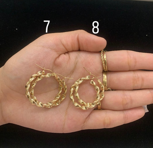10k Yellow Gold Diamond Cut Twisted Round Hoops, Textured Graduated Hoops, Big Hoops, Small Hoops, Medium Hoops, Gold Earrings