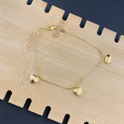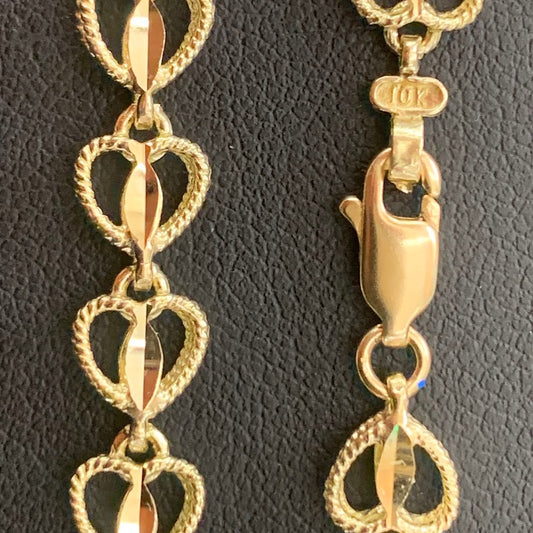 10k Gold Heart Bracelet, Women's Heart Charms Gold Bracelet, Gold Heart Design Bracelet
