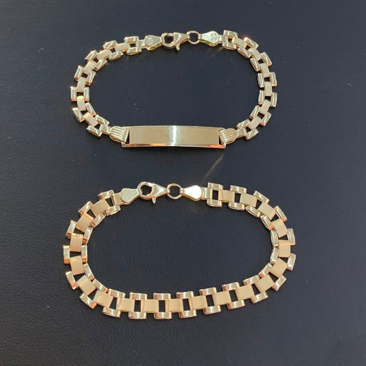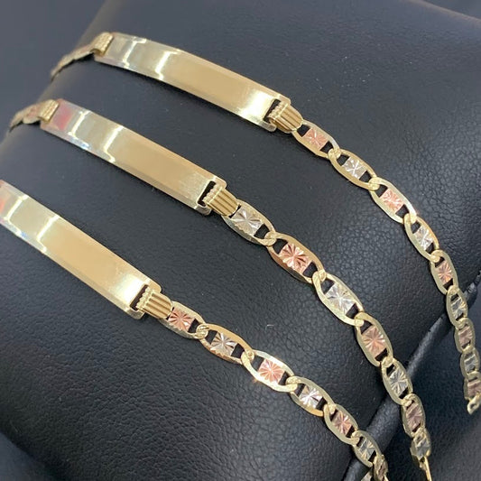 10k Gold Valentino ID Bracelet, Name Plate Gold Bracelet, Tri Color Gold, Valentino Tri Color Link Bracelet, Custom Name Engrave Bracelet