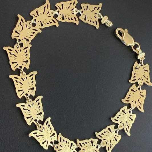 10k Gold Butterfly Bracelet, Women's Butterfly Charm Gold Bracelet, Gold Bracelet Gift