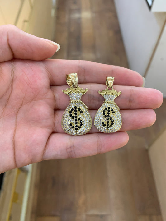 10k Gold Money Bag Pendant, Money Pendant for Chain, Small Money Bag Charm, CZ Money Pendant, Gifts for Him, Money Bag Dollar Sign Pendant 10k.