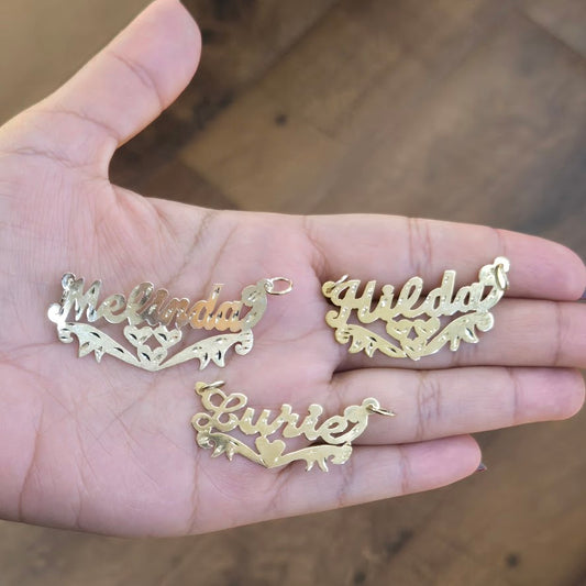 10K Gold Heart Name Plate, 14k Gold Custom Name