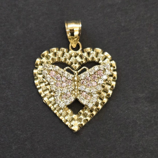 10K Gold Heart Butterfly Pendant, Presidential Link Heart Charm, Small Heart Gold Charm, CZ Stone, Valentine's Gift, Butterfly Pendant