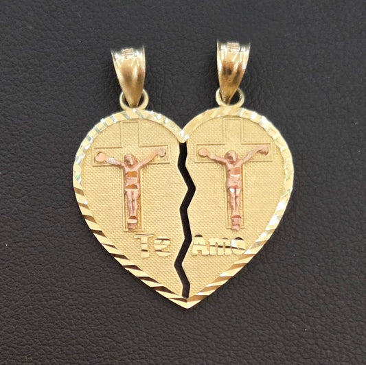 10k Gold Half Heart Charm, Matching Half Heart Pendant, Te Amo Charm, Couples Matching Charms, Virgin Mary Heart, Cross Heart