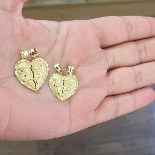 10k Gold Half Heart Sweetheart Charm, Matching Half Heart Pendant, Couples Matching Charms,