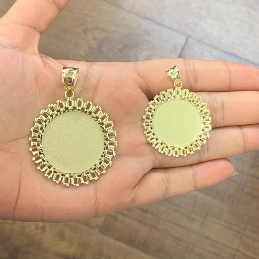 10k Gold Presidential link Circle Picture Pendant, Memorial Picture Pendant (Picture Included)