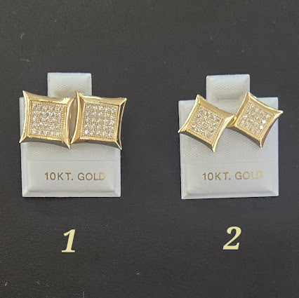 10k Gold Square Diamond CZ Stone Earrings, Screw-on Back Gold Earrings
