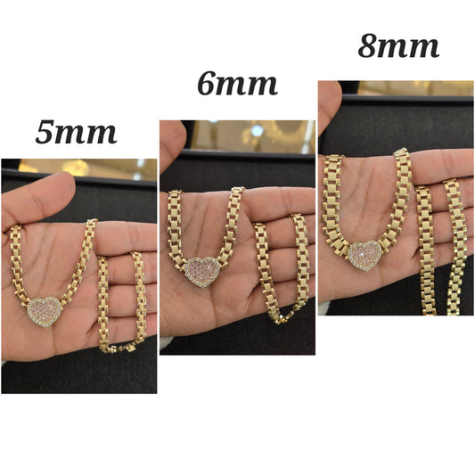 10k Gold Small Sliding Pink Heart Necklace, Presidential Gold Chain, Link Chain, Chain w/ Heart Gold Pendant, Link Chain
