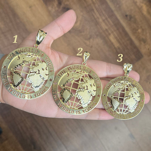 10k Gold World Pendant, The World is Yours, World Globe Pendant, Big World Pendant, Small World Charm, Star World Pendant, Birthday Gift