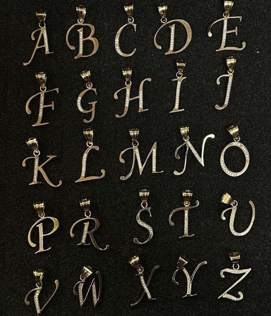 10k Gold Cursive Initial Diamond Cut Finish Pendant, Letter Pendant, Gold Letter Charm, Alphabet Name Initial, Cursive Name Initial Pendant