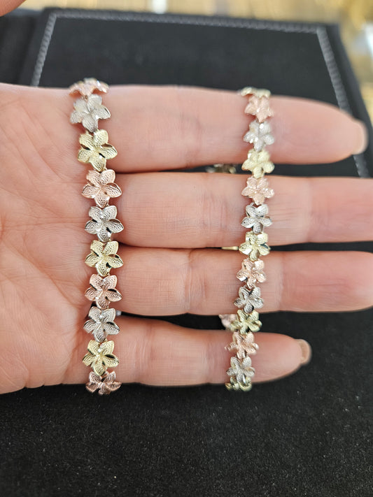 10k Gold Hibiscus Bracelet, Gold Hibiscus flower Bracelet, Hibiscus Bracelet, Tri Color Hibiscus flower Bracelet, Bracelet, Gift Bracelet for Women