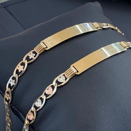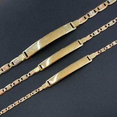 10k Gold Valentino ID Bracelet, Name Plate Gold Bracelet, Tri Color Gold, Valentino Tri Color Link Bracelet, Custom Name Engrave Bracelet