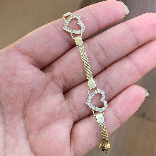 14k Gold Open Heart Bracelet, 14k Gold Heart Design Bracelet, Women's Gold Bracelet, CZ Stone, Love Heart Bracelet