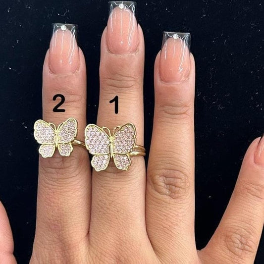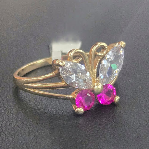 10k Gold WhiteStone Butterfly Ring, White Butterfly Ring, Women's Gold Ring, Shiny Gold Ring, Pink CZ Stone Butterfly Ring