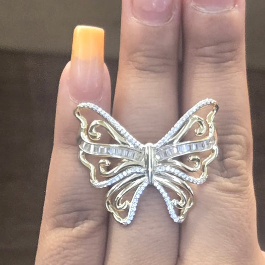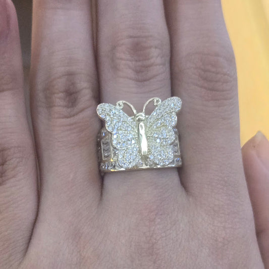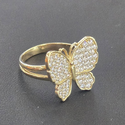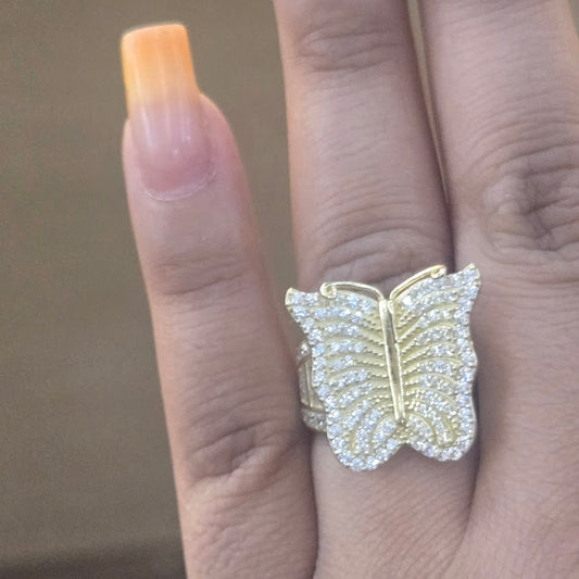 14k Gold CZ White Stone Butterfly Ring, Butterfly Ring, Big Butterfly Ring, Women's Gold Ring, Shiny Gold Ring
