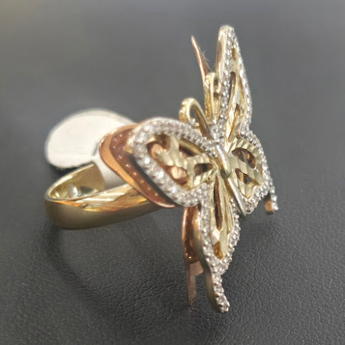 14k Gold Big Butterfly Ring, Pretty Butterfly Gold Ring with Cubic Zirconia