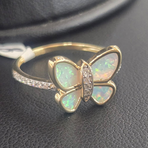 10k Gold Butterfly with CZ Ring, Butterfly Ring, Gold Ring, Women's Gold Ring, Gifts for Her