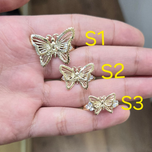 10k Gold Pink Stone Matching Slider Butterfly Ring, Pink Butterfly Ring, Women's Gold Ring, Shiny Gold Ring, Pink CZ Stone Butterfly Ring