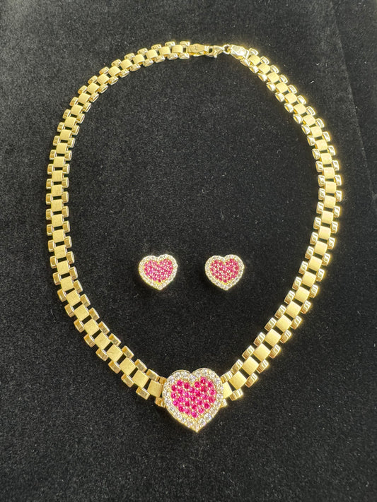 10k Hot Pink Slider Pendant, 10k Presidential Chain with Hot Pink slider and Earrings Set, 10k Gold Hot Pink Heart Pendant Only, Pink Heart Earrings Only ,Slider for Presidential link, Heart Pendant, Heart pendent, White Shiny Heart Charm