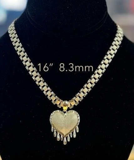10k Gold Heart Pendant with Presidential Necklace & Earring Set, 10k Presidential link Chain Set, 10k Gold Dripping Heart Set, Women's Favorite Heart Set