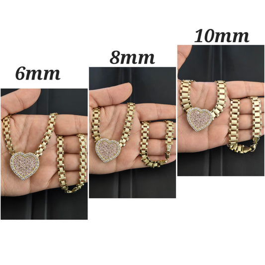 10k Gold Large Sliding Pink Heart Necklace, Presidential Link Gold Chain, Gold Chain, Chain w/ Heart Gold Pendant, Presidential link Chain with slider