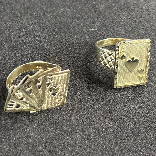 10k Gold Playing Cards Ring, Gold Men's Ring, Ace Ring, Birthday Ring Gift, Unisex Ring, Royal Flush of Hearts Ring, King of Spades, Poker