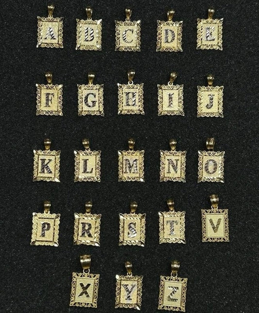 10k Gold Rectangle Initial Pendant, 14k, Gold Rectangle Initial Letter Pendant, Gold Letter Charm, Alphabet Name Initial Pendant,