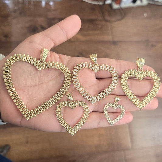 10k Gold Presidential link Pendant, Small Heart Gold Charm, Big Heart Pendant, Diamond Cut Style, CZ Stone, Valentine's Gift