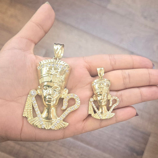 10k Gold Nefertiti Pendant, Nefertiti Charm, Gold Egyptian Queen Pendant, Large Nefertiti Necklace Pendant,