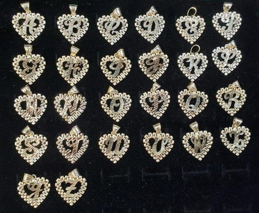 10k Gold Heart Initial Pendant, Diamond Cut Heart Letter Initial Charm, Cursive Initial Pendant, Gold Heart Alphabet Initial Charm