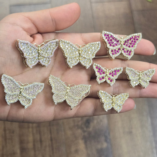 10K Gold Pink Butterfly Sliding Pendant, Pink Butterfly Slider, Pendant, 10k Gold Charm, CZ Stone, White Butterfly Pendant