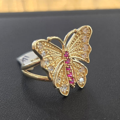 14k Gold with Pink CZ Stone Butterfly Ring