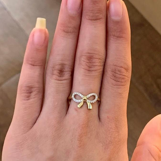 14k Gold Bow Ring,Ribbon Bow Ring, Gold Coquette Bow Ring, Gift for Her,Yellow Gold CZ Stone