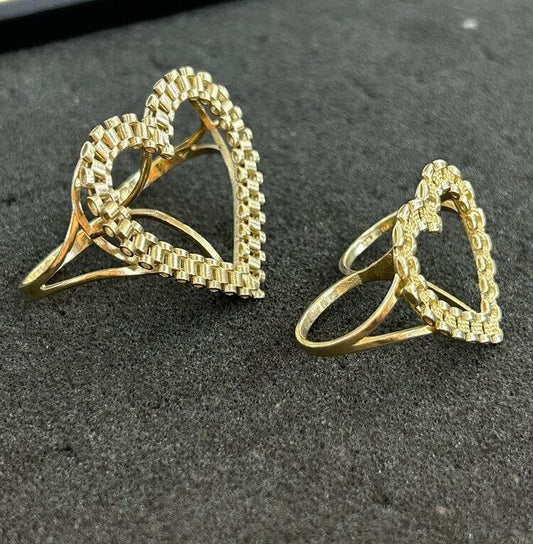 10k Gold Heart Presidential link Two Finger Ring, 2 Finger Ring, Rolly Heart Ring, 10k Gold Heart Ring, Big Heart Ring, Women's Ring