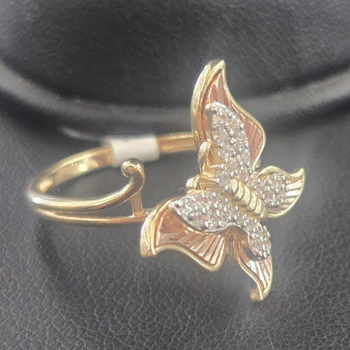 14k Gold CZ White Stone Butterfly Ring, Butterfly Ring, Big Butterfly Ring, Women's Gold Ring, Shiny Gold Ring
