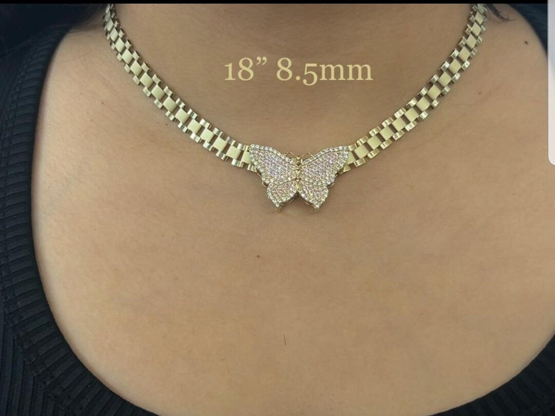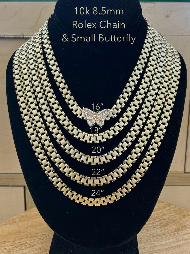 10k Gold 8.5mm Presidential Link Chain with Butterfly Pendant, Rolly Chain, Rolly Link Gold Chain, Chain w/ Butterfly Gold Pendant, Gold Chain