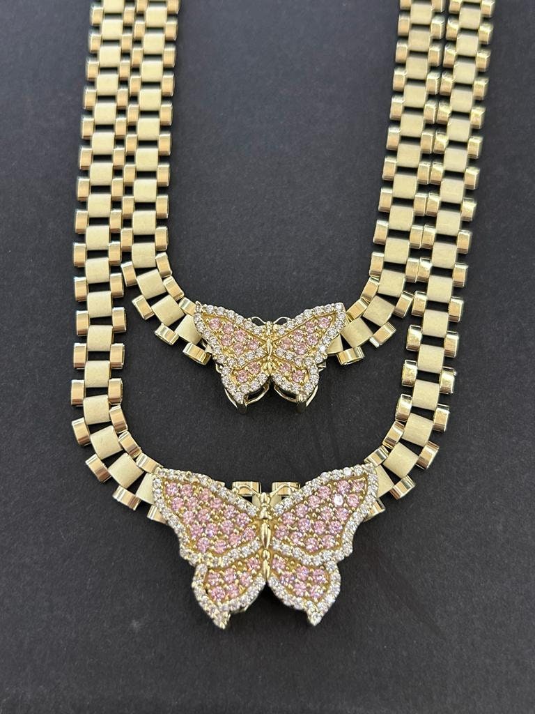 . 10k yellow gold Presidential link chain with Pink Butterfly Pendant