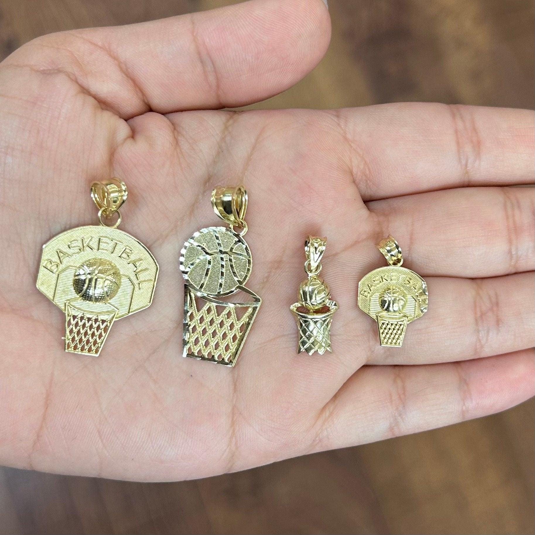 10k Gold Basketball Pendant, Basketball Hoop Pendant, Small Basketball Charm, Sports Pendant, Large Basketball Pendant, Gold Basketball Net
