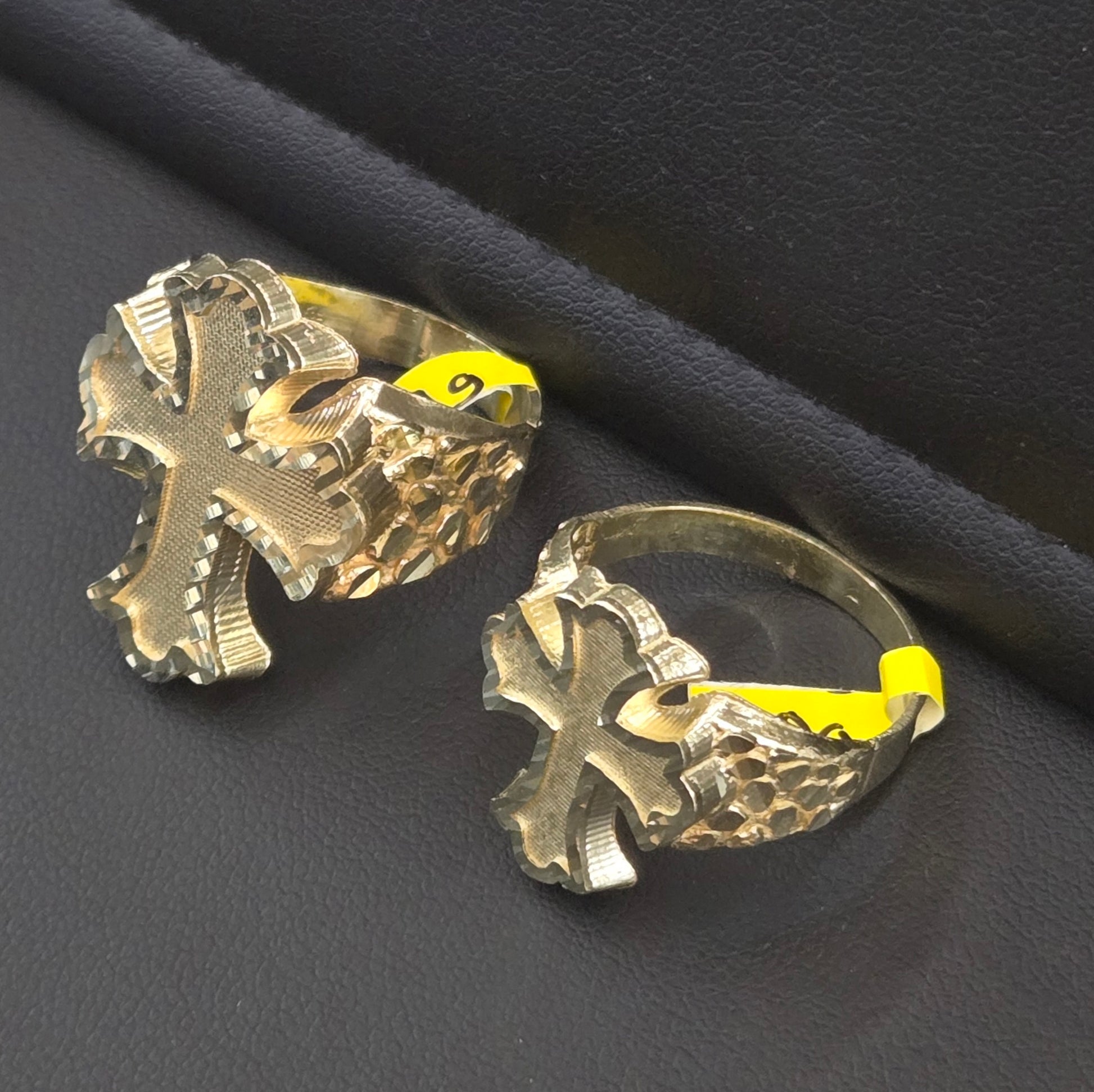 10k Gold Big Cross Ring, Gold Nugget Style Ring, Nugget Cross Ring, Men's Gold Ring, Cross Ring for Men, Holiday Gift Ring,