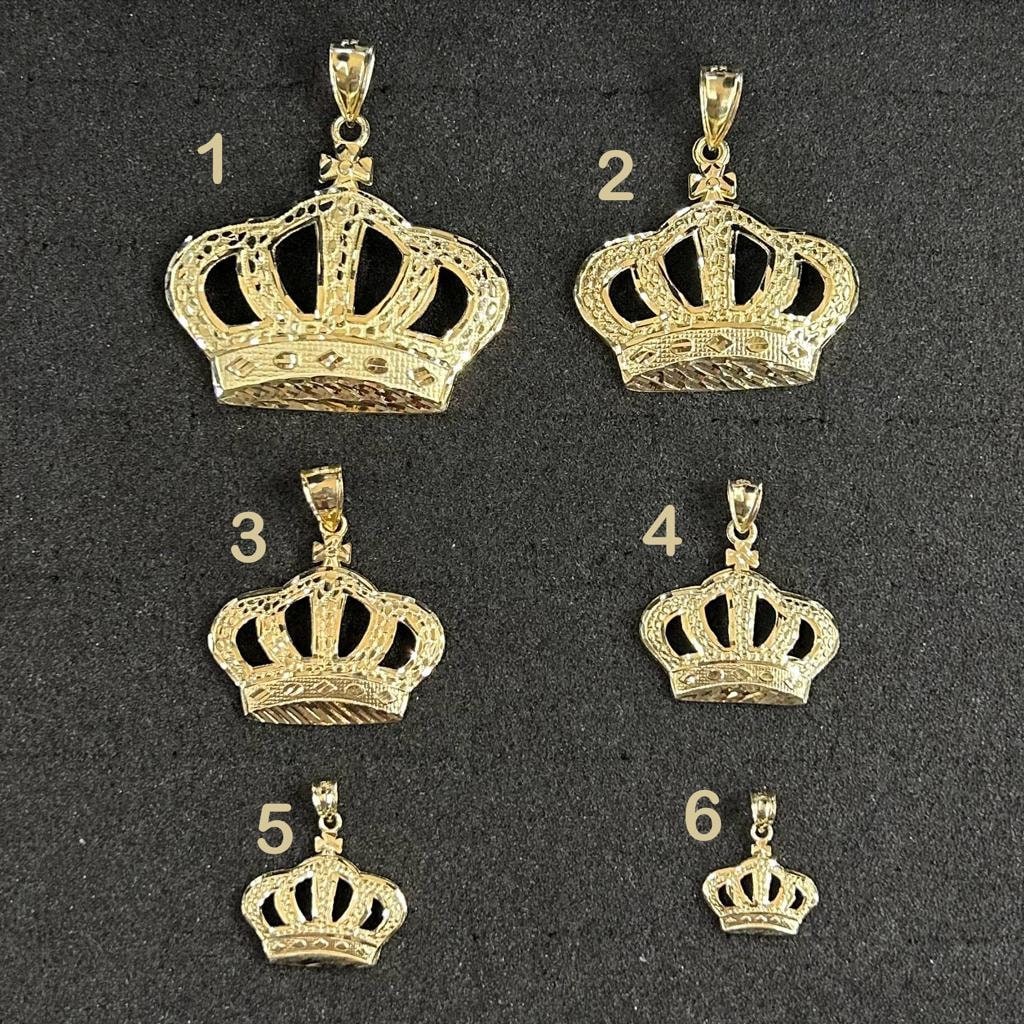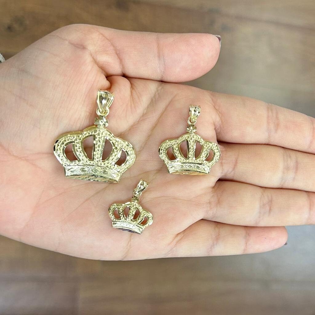 10k Gold Crown Pendant, Crown Charm, Big Crown Pendant, Small Crown Charm, King & Queen Crown Matching, Nugget Style Diamond Cut Finish