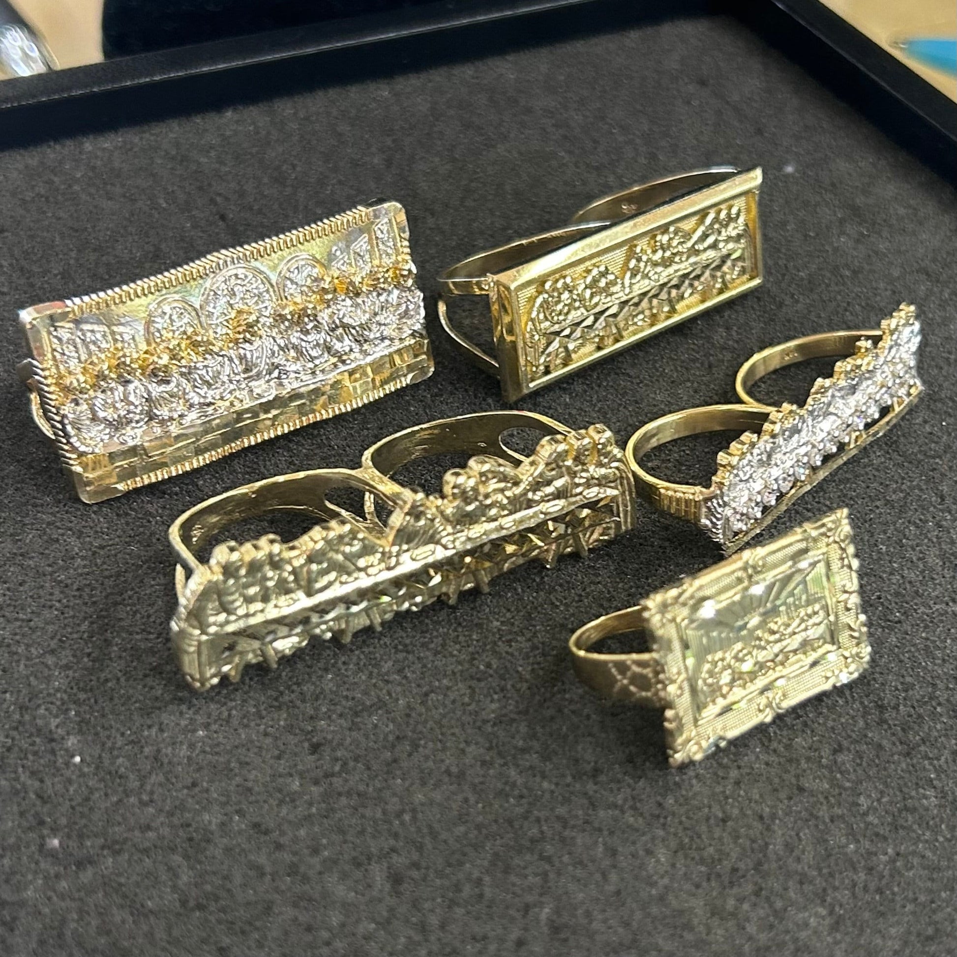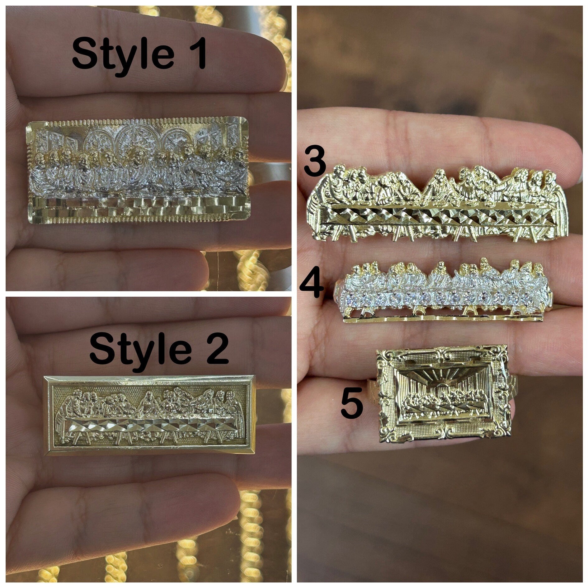 10k Gold Last Supper Two Finger Ring, Gold 2 Finger Ring, Double Ring, Gold Men's Ring, Birthday Gift Ring, Religous Ring, Ultima Cena