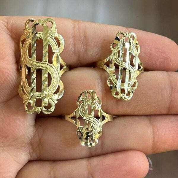 10k Gold Money Sign Ring, Gold Dollar Sign Ring, Money Ring