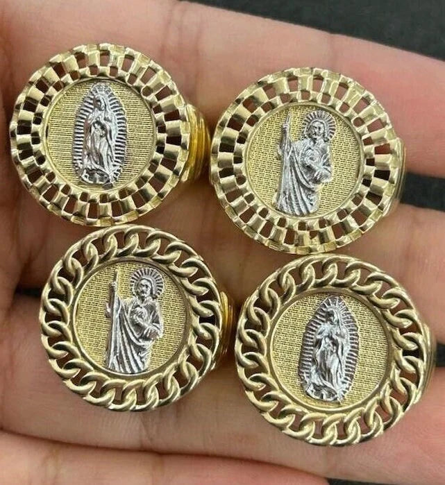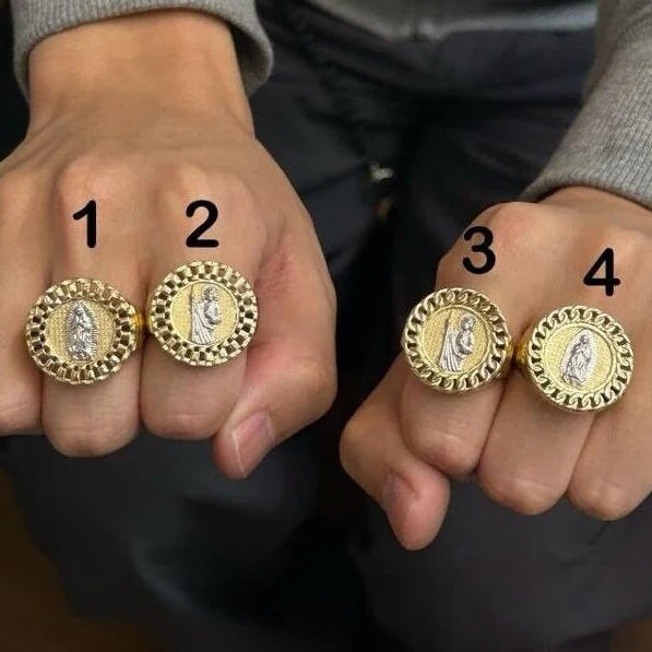 10k Gold Saint Jude Ring, 10k Gold Virgin Mary Ring, Gold Men's Ring, San Judas Ring, Maria Ring, Religious Gold Ring, Link Men's Ring