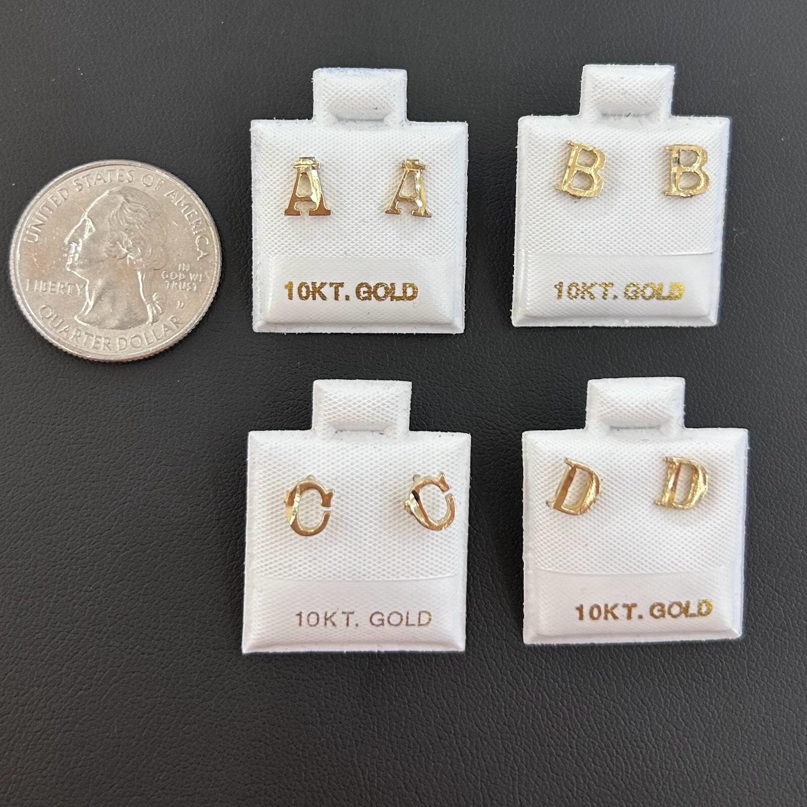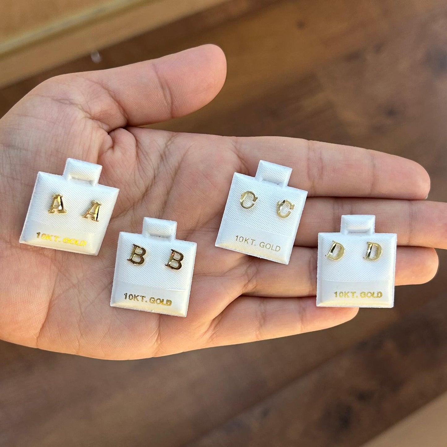10k Gold Small Initial Earrings, Letter Earring, Alphabet Letter Earring, , Gold Letter Earrings, Initial Earrings, Push back, Name Letter
