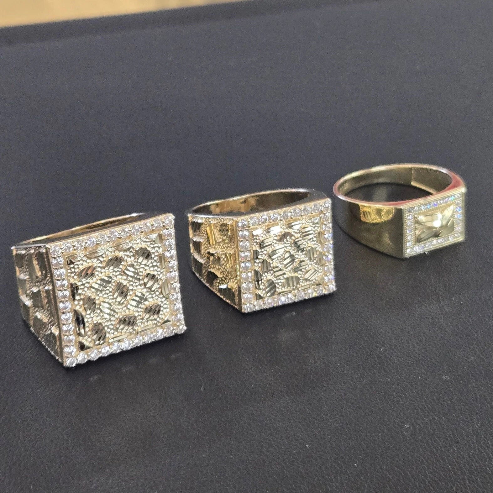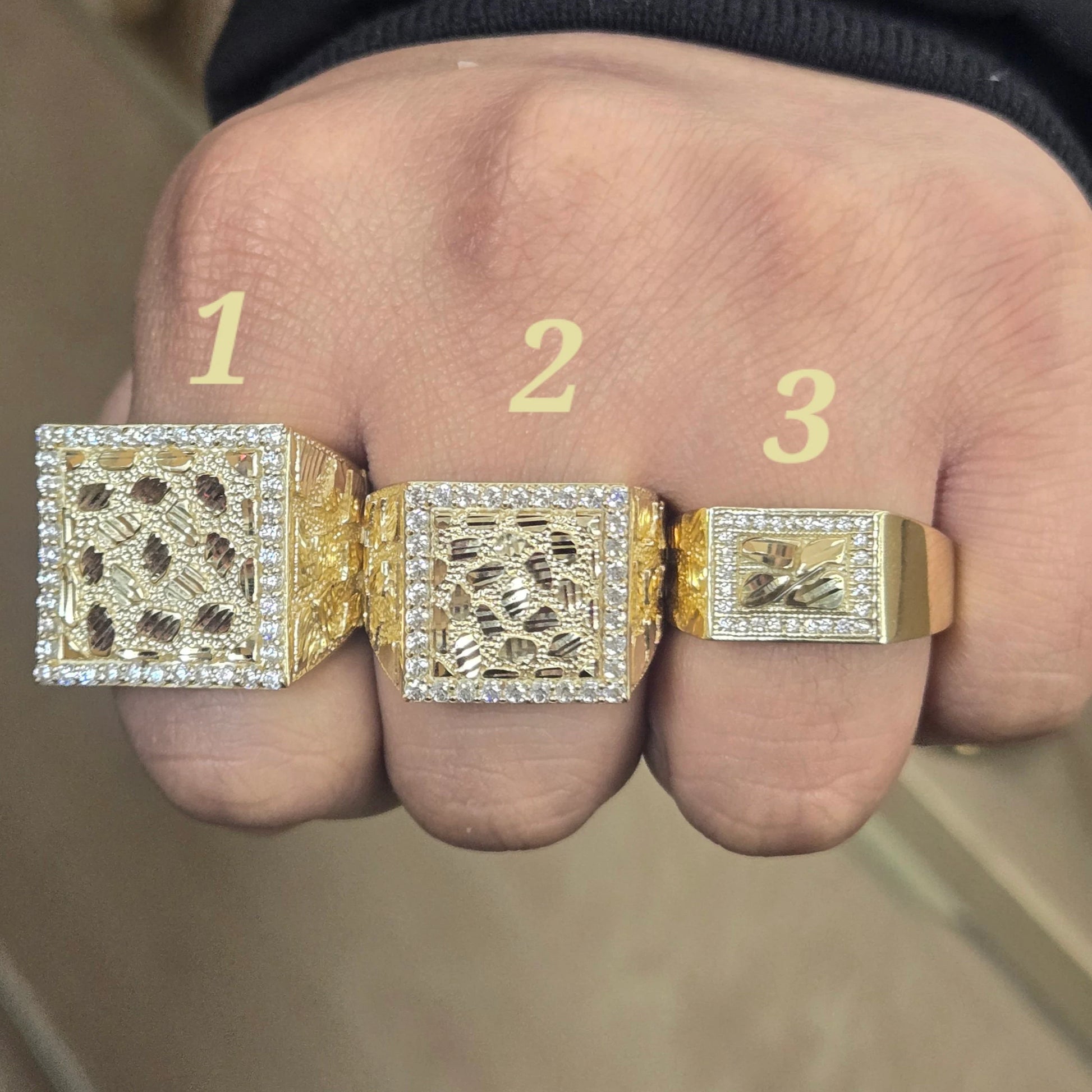 10k Gold Square Nugget Stone Ring, CZ Stone Ring, Men's Gold Ring, Gold Nugget Style Ring with Stone, Big Nugget Ring