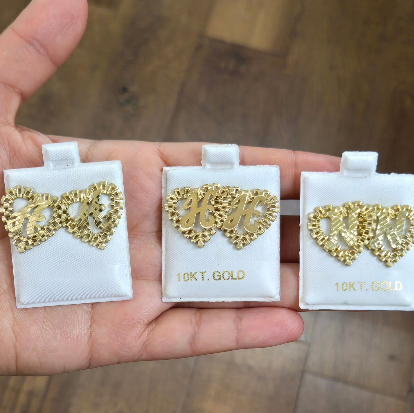 10k Yellow Gold Big Presidential link Heart Initial Earrings, Letter Earring, Alphabet Letter Earring, Gold Initial Earrings, Cursive Letter